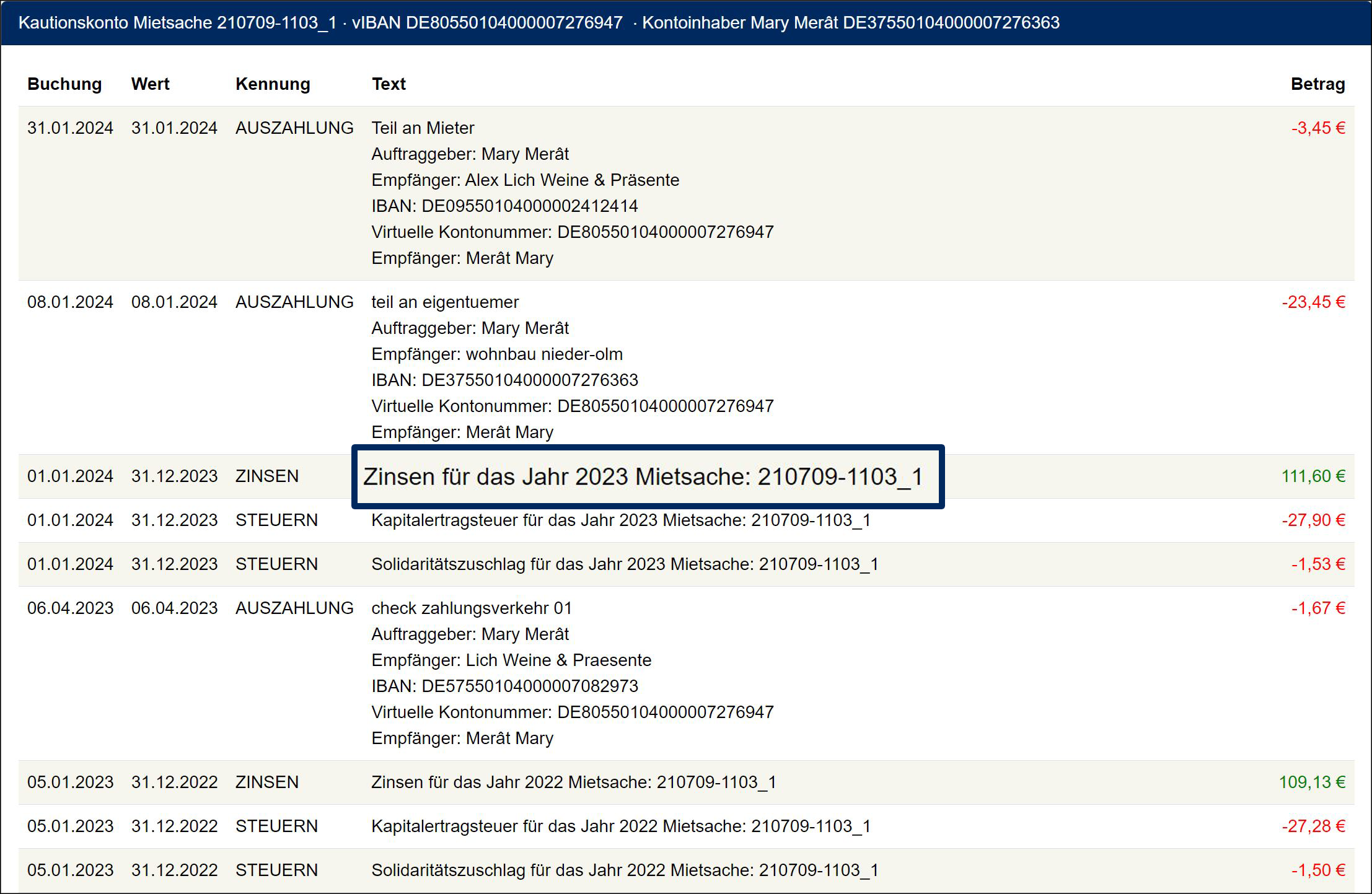 Dank der persönlichen virtuellen IBAN, die zur Einzahlung genutzt wird, lässt sich eine Mietkaution einem Mietvertrag jederzeit eindeutig zuweisen – unabhängig davon, ob sie von Dritten überwiesen wurde.