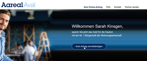 3. Mieter schließt online Aareal Aval Vertrag ab