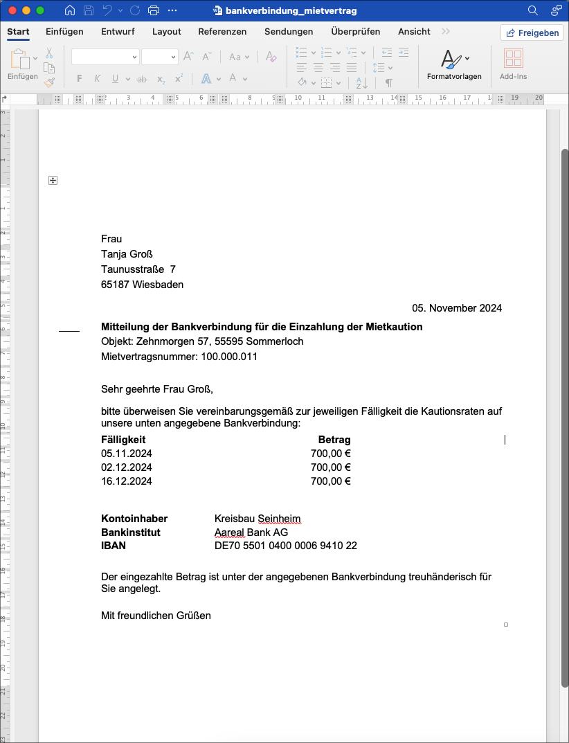 Ja, zur Nutzung von Aareal Account Kautionen benötigen Sie ein Kautionskonto bei der Aareal Bank.